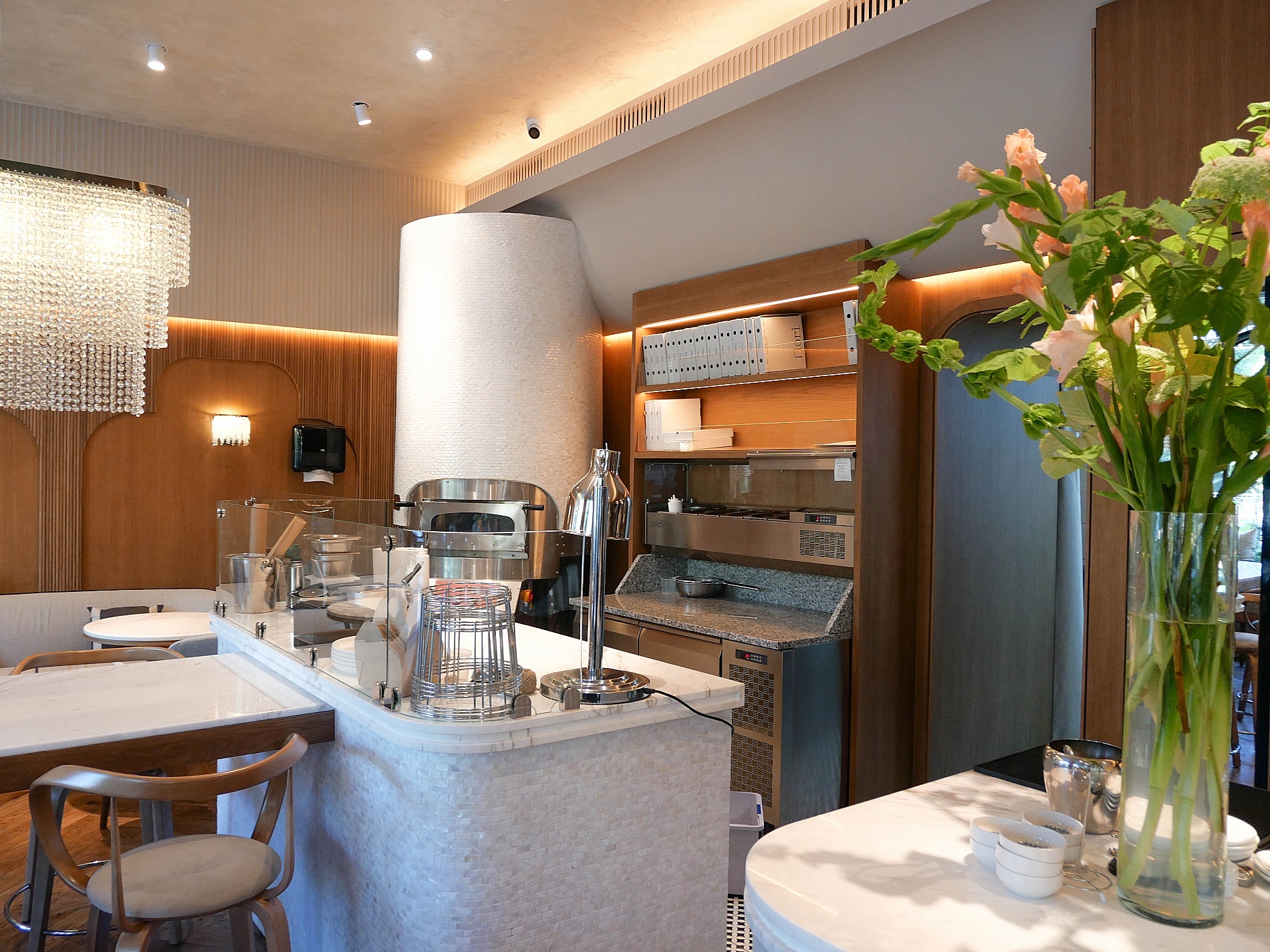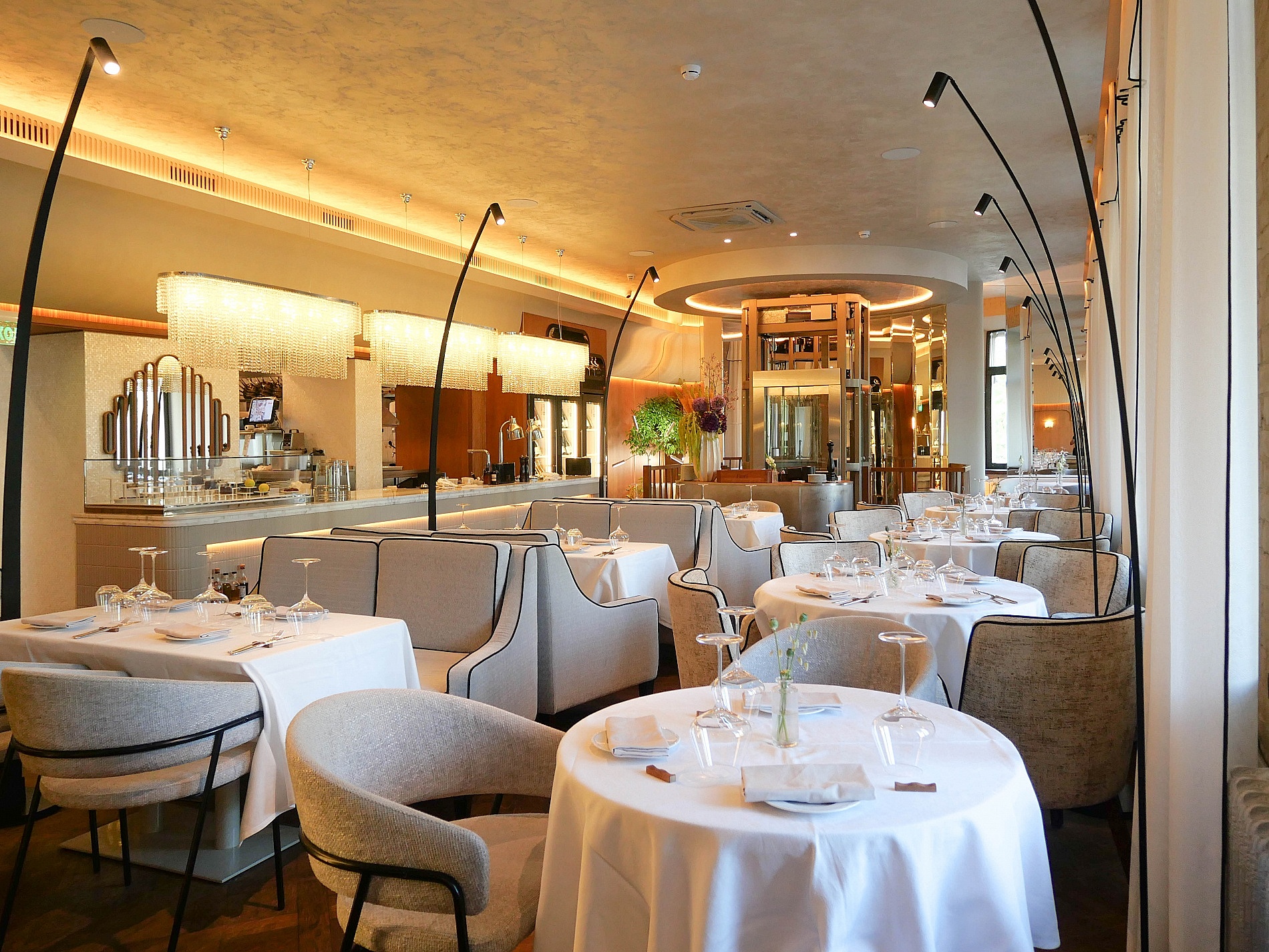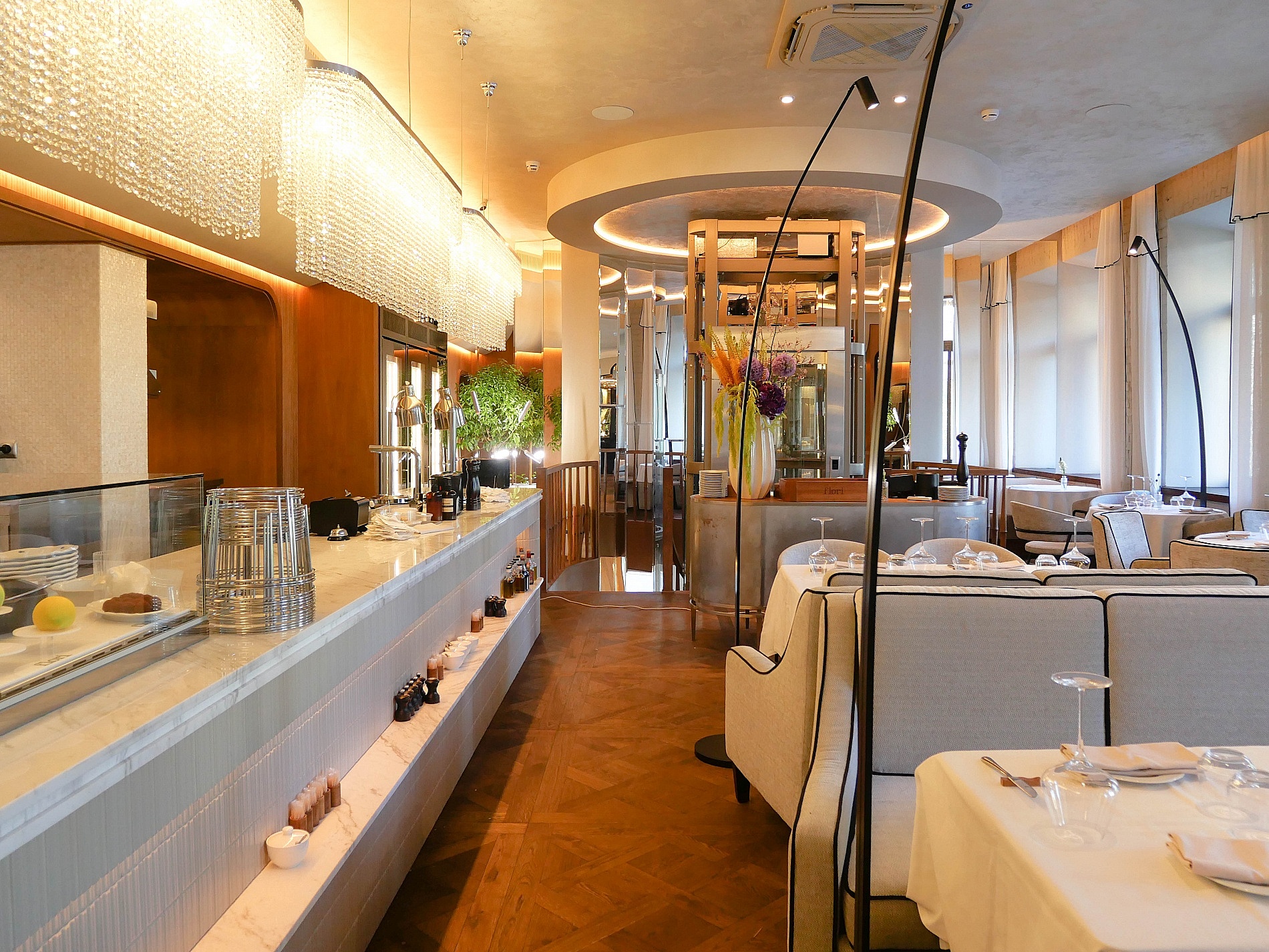 Первый этаж выполнен в стиле бистро, где можно комфортно разместиться для завтрака или легкого обеда, второй этаж более элегантный с хрустальными люстрами, открытой кухней и белыми скатертями в духе fine dining — идеальный для размеренного ужина.