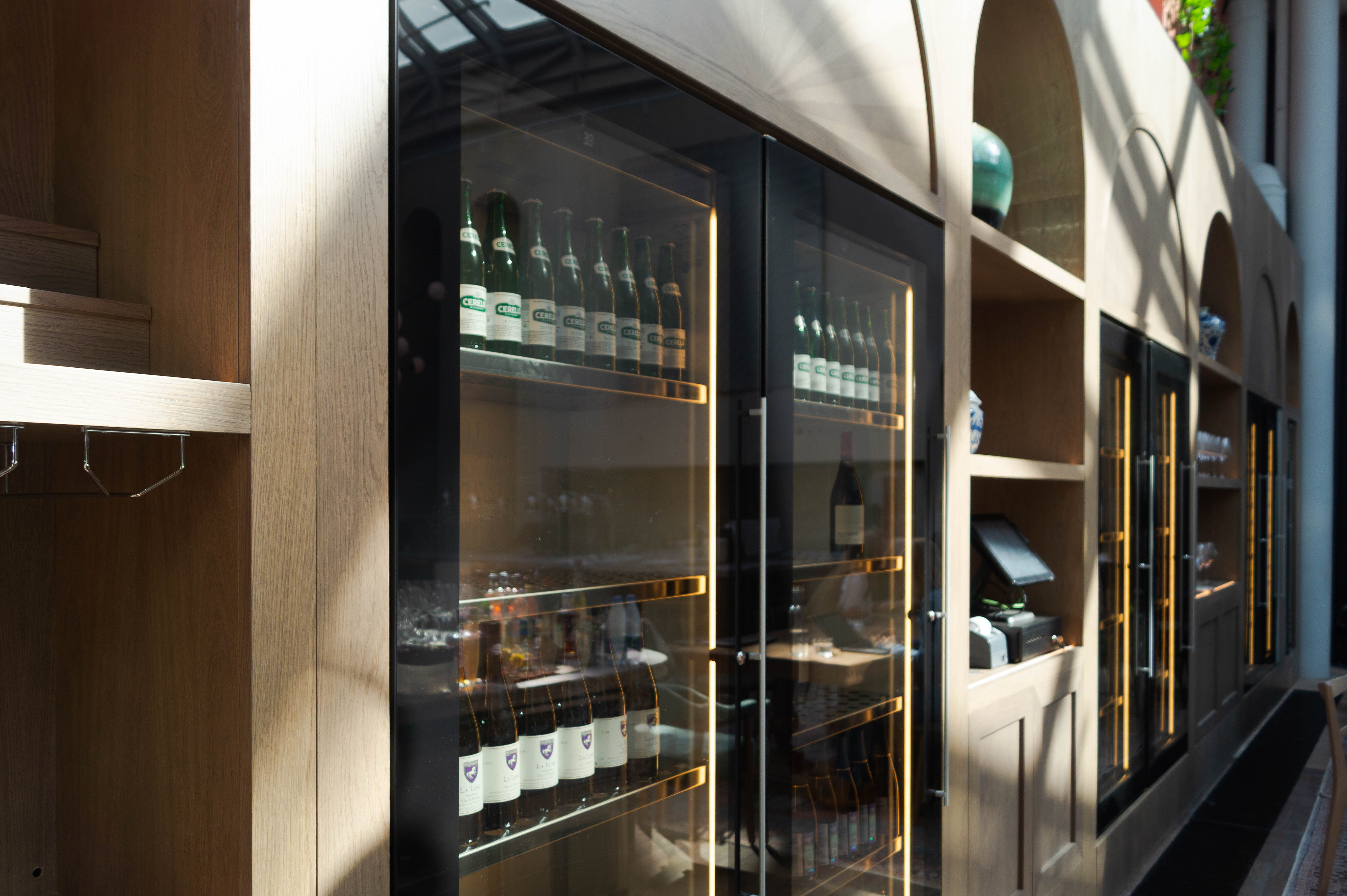 В центре зала организована барная зона, для которой мы поставили блендеры BLENDTEC, соковыжималку ROBOT COUPE, льдогератор BREMA. По всему залу встроены винные шкафы ENOFRIGO для правильного хранения винной коллекции.