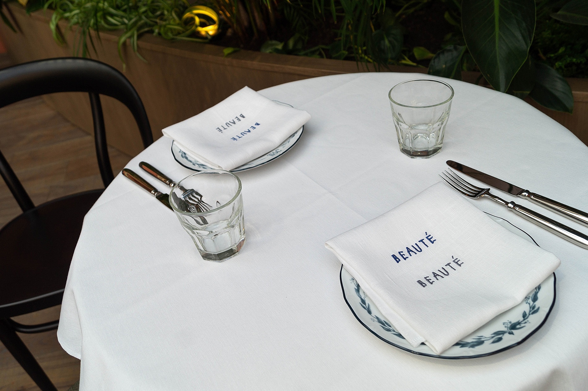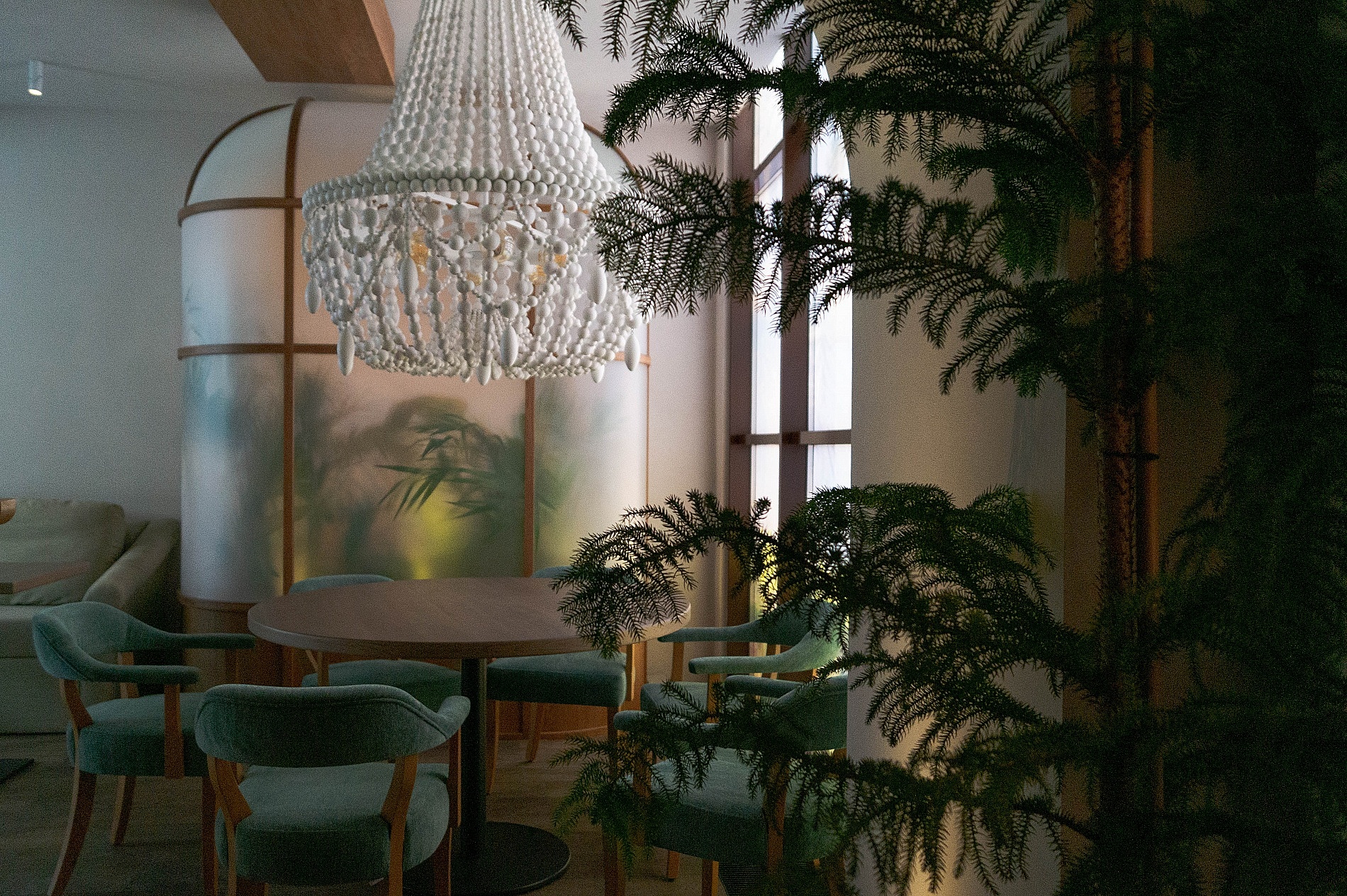 Интерьер ресторана светлый, воздушный, просторный, в стиле романтичного прованса. Солнечный свет, натуральное дерево, много зелени переносят в настоящий парижский сад, где можно отдохнуть душой и насладиться великолепной авторской кухней Глена Баллиса.