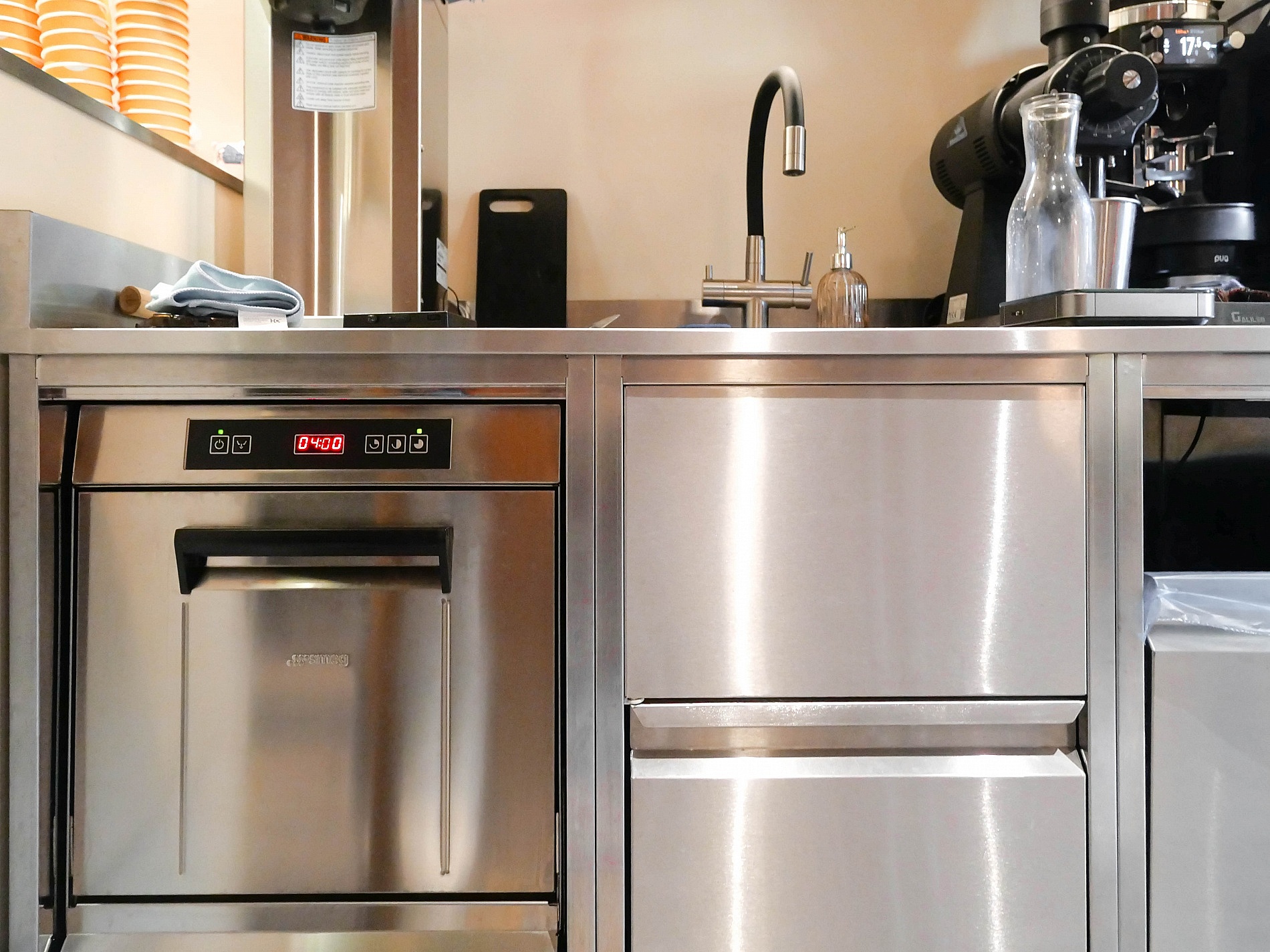 Совместно с заводом BSV-INOX специалисты «Алтэк» спроектировали и изготовили эргономичный барный модуль с холодильными и нейтральными отделениями, сварной моечной ванной, секциями под льдогенератор и стаканомоечную машину SMEG SPG405M.