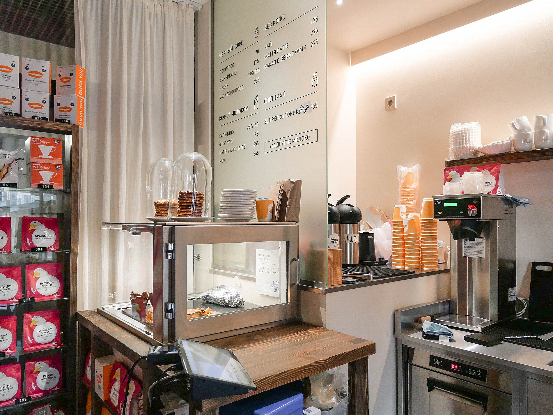 Здесь Вы найдете богатое меню: от классического черного кофе и кофейных напитков с молоком до утонченного матча латте и согревающего какао с зефирками. На десерт Вас ждут восхитительный баскский чизкейк с манговым курдом, ароматные печенья, шоколадные брауни, а для любителей сытных блюд - фирменные гриль-чизы с сыром/шпинатом, курицей/беконом и рваной говядиной.