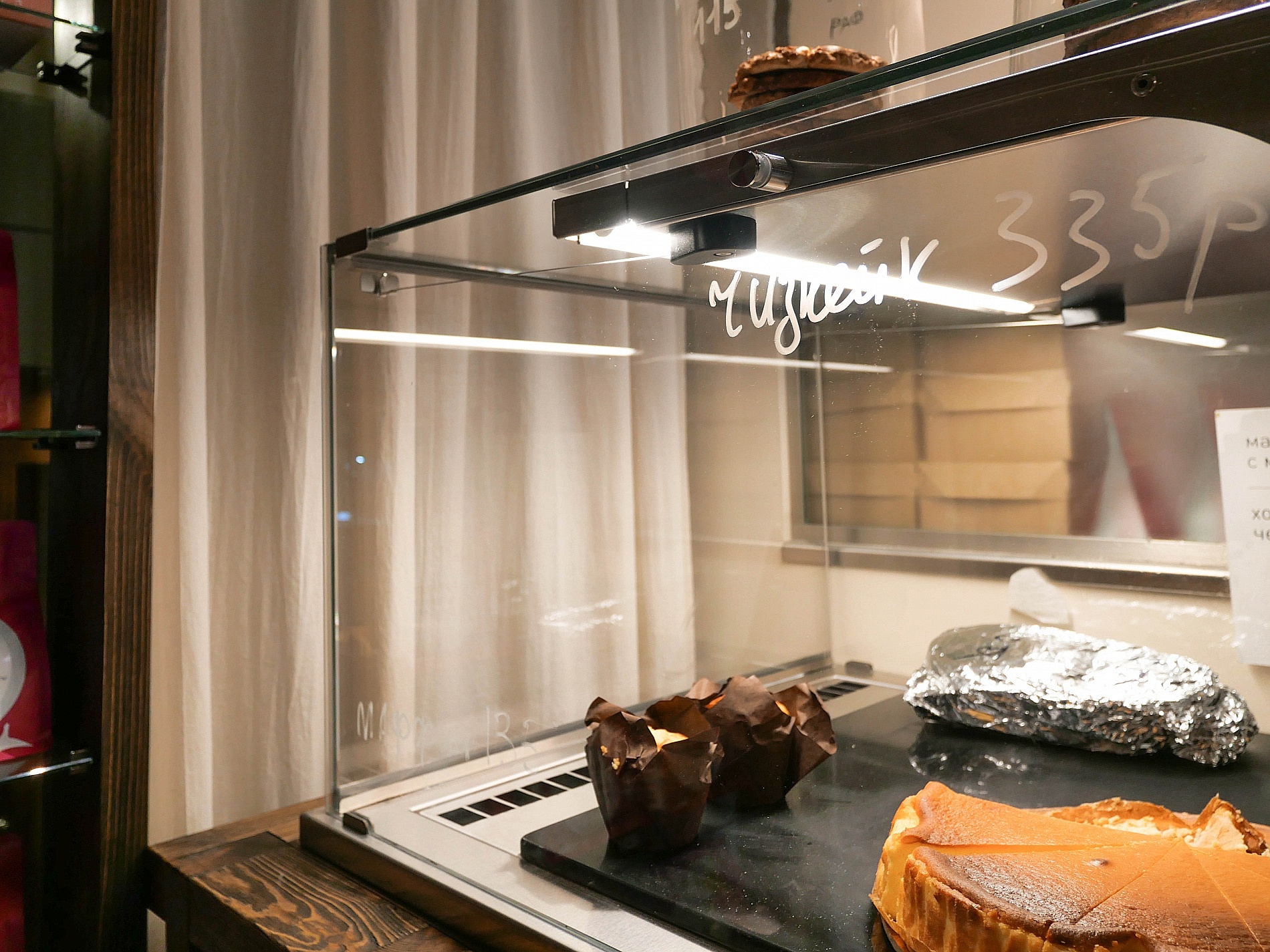 Все десерты хранятся в охлаждаемой витрине системы drop-in, также эксклюзивно произведенной для заведения заводом BSV-INOX.