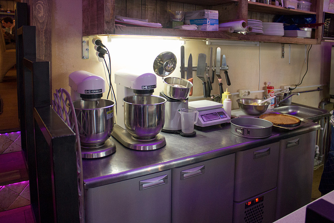 Так как блюд из теста в меню достаточно много – бургеры, чебуреки, паста…, а пицца вообще является одним из самых популярных и часто заказываемых, то для замешивания теста был заказан двухскоростной спиральный тестомес PRISMAFOOD IBT 20 с двадцатилитровой дежой, которая вмещает до 17 кг готового теста. За несколько минут эта машина способна приготовить абсолютно однородную тестовую массу. А при заказе опциональной насадки – сможет еще и взбить его.