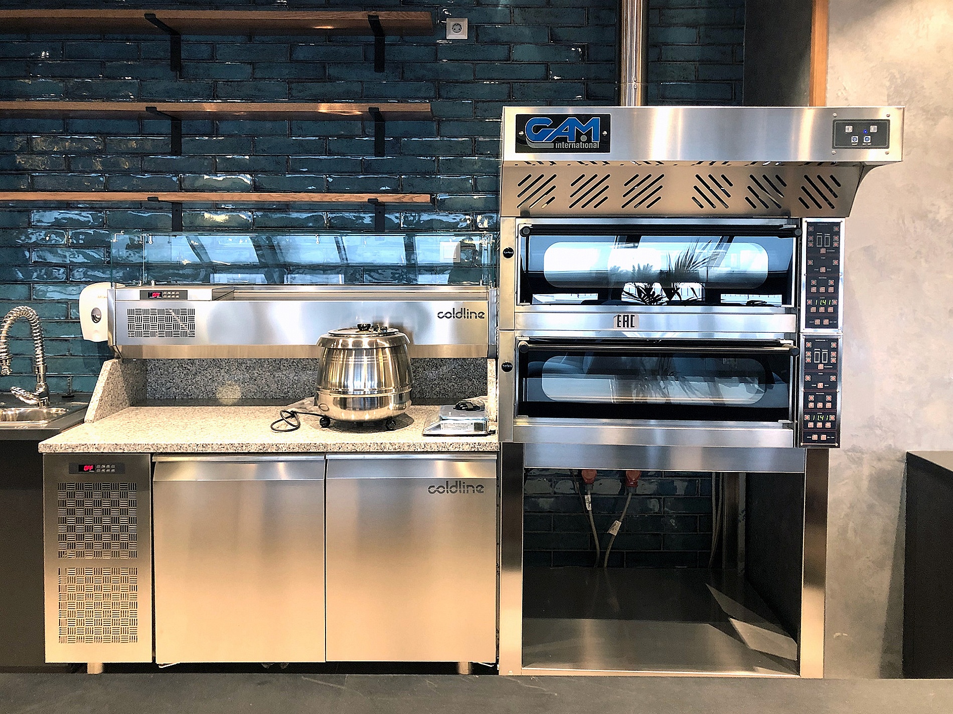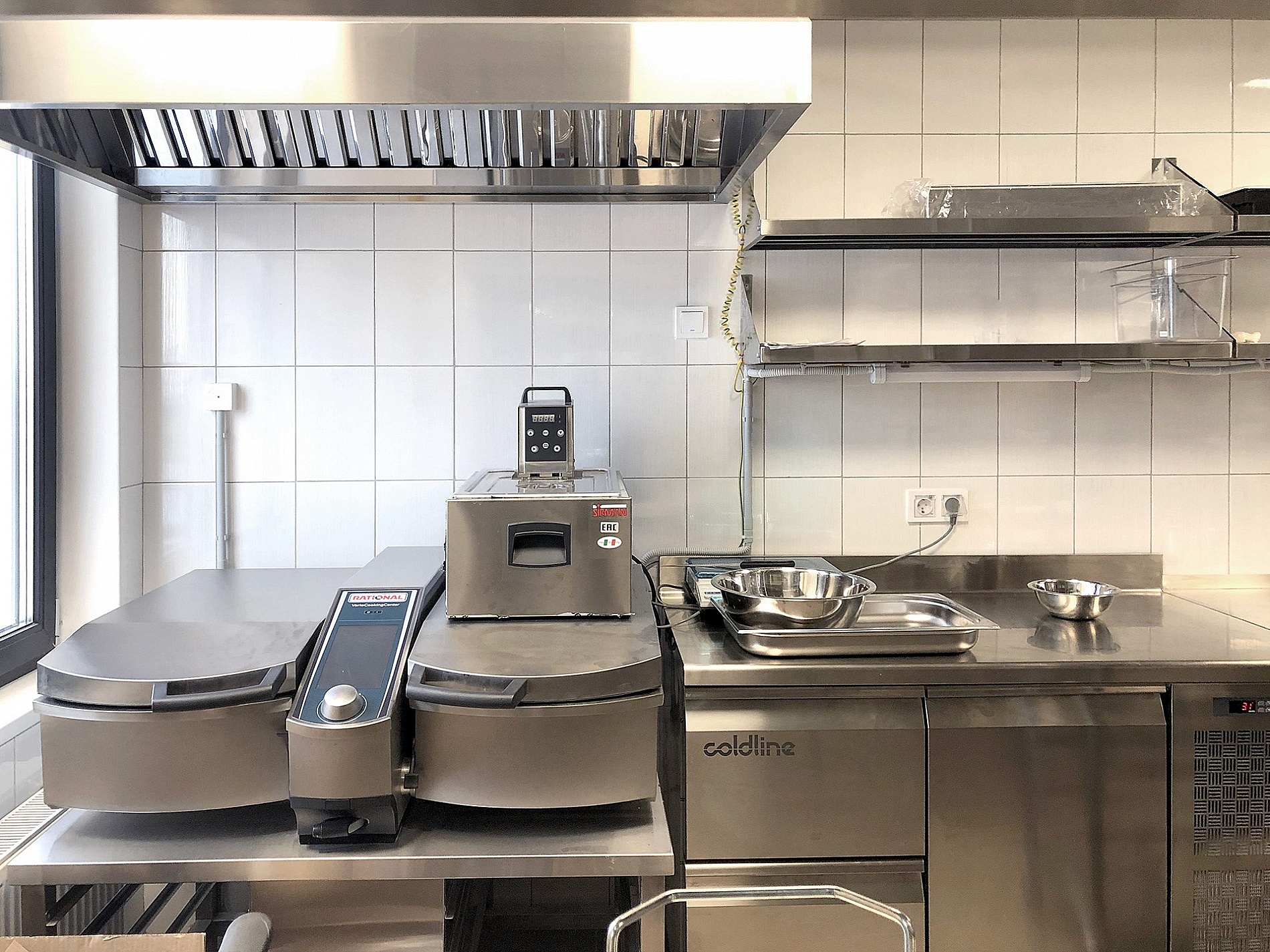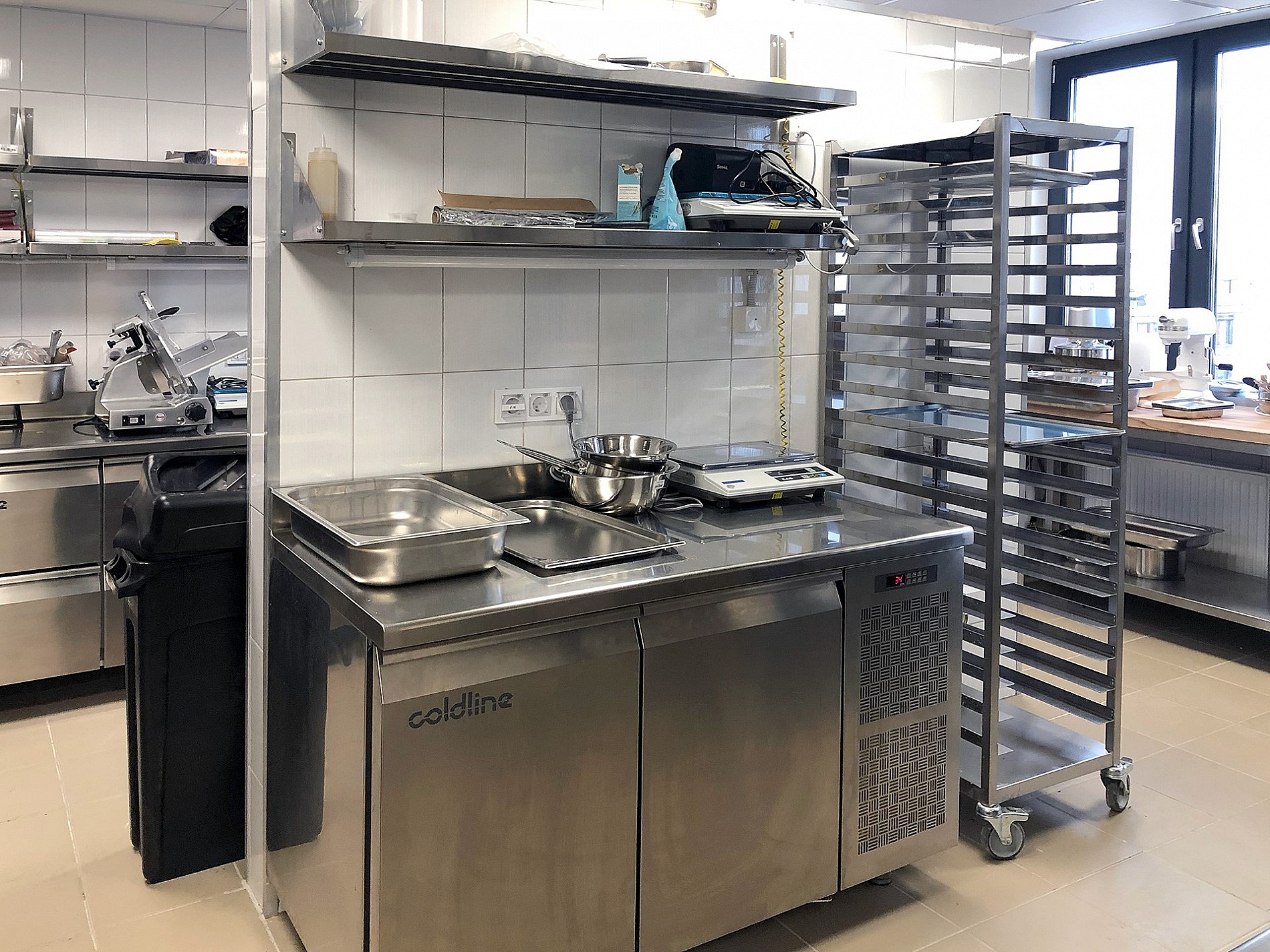 В пекарском цехе правит бал профессиональная хлебопекарная печь MIWE. С ее помощью можно готовить хлеба, багеты, круассаны, а также десерты. Ей вторит планетарный миксер KITCHEN AID — в нем можно и тесто смешивать, и начинки, муссы, кремы взбивать.