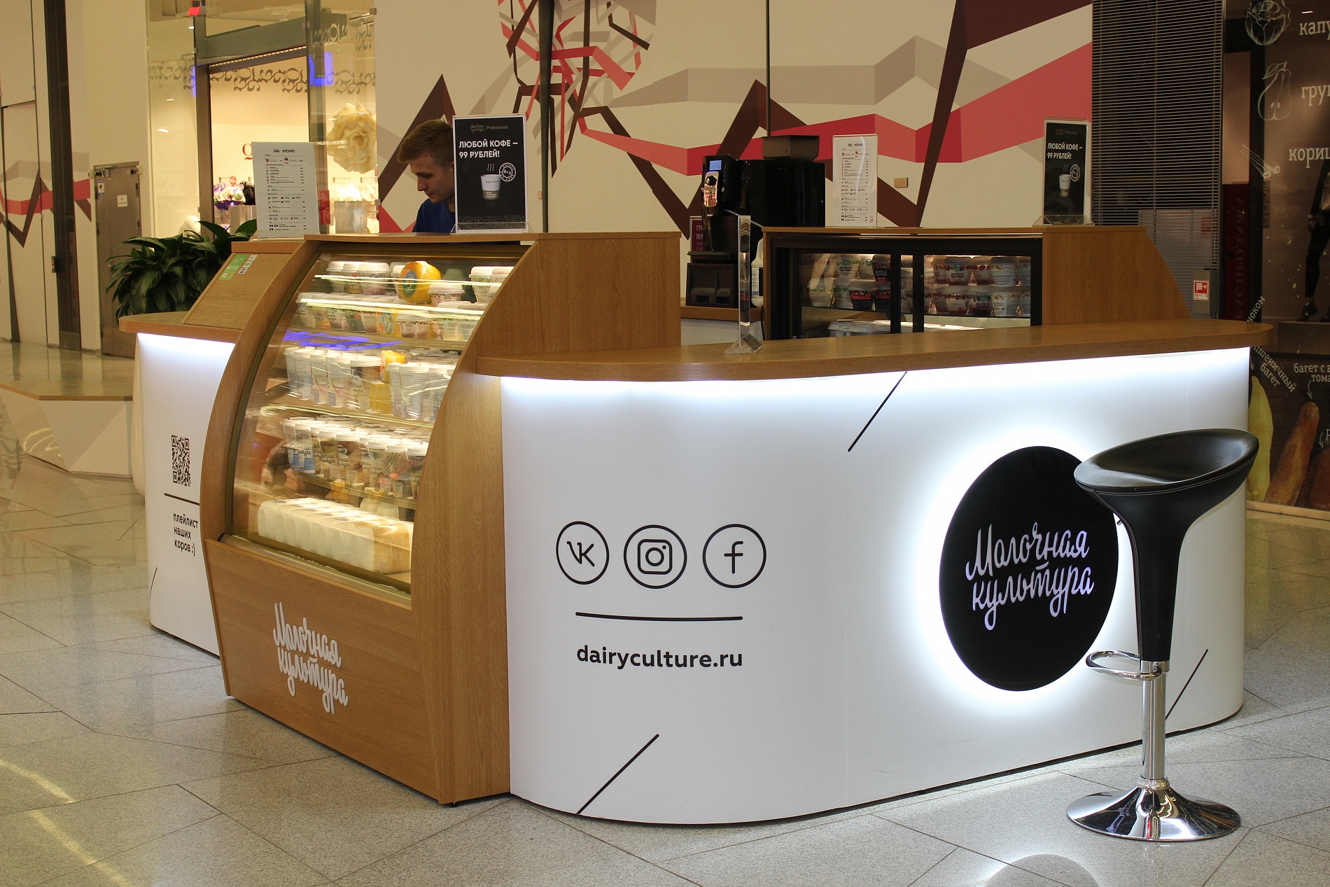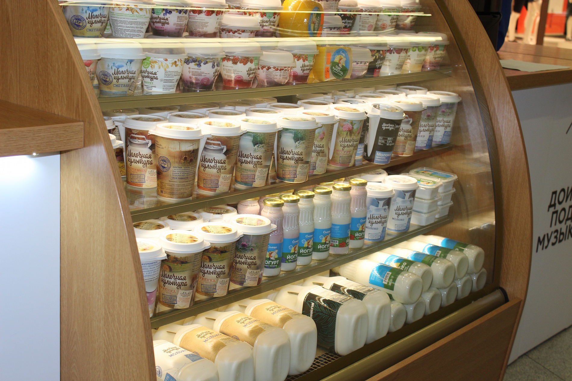 Торговля кисломолочными изделиями – перспективное направление бизнеса, поскольку молоко и производные из него – одни из главных элементов рациона современного человека. Лавки «Молочная культура» – это своего рода молочные отделы, вынесенные отдельными точками торговли в крупных торгово-развлекательных центрах. Кроме йогуртов, молочных десертов и ряженки, здесь можно купить кофе или молочных коктейль.