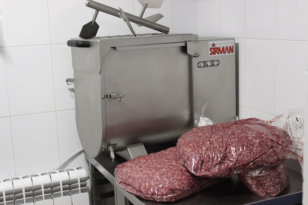 Бургерные котлеты крутят исключительно из говядины блэк ангус. На всех стадия приготовления мясных заготовок для бутербродов применяется оборудование SIRMAN – фаршемешалка, пресс, формовщик котлет. Оно выполнено полностью из нержавеющей стали AISI 304, оснащено мощными двигателями, надежными лопостями, реверсами и защитными механизмами, так что в целом аппараты очень выносливы, надежны и справляются с плотными массами свежего мяса.