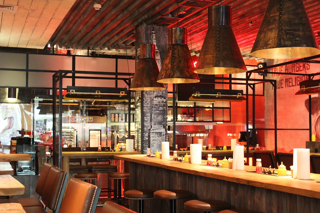 «Мясорубка» на четвертом этаже ТРК «Галерея» – второй объект сети бургерных с одноименным названием. Брутальный дизайн, приглушенное освещение, открытая кухня, посадка за высокими барными столами и обычными, светящийся хэштег #Я – интерьерные решения в заведении во многом аналогичны первой «Мясорубке» на Литейном. О готовности заказа просигнализирует специальное табло. На противоположной от него стене висит электронная доска, которая отсчитывает количество приготовленных бургеров.