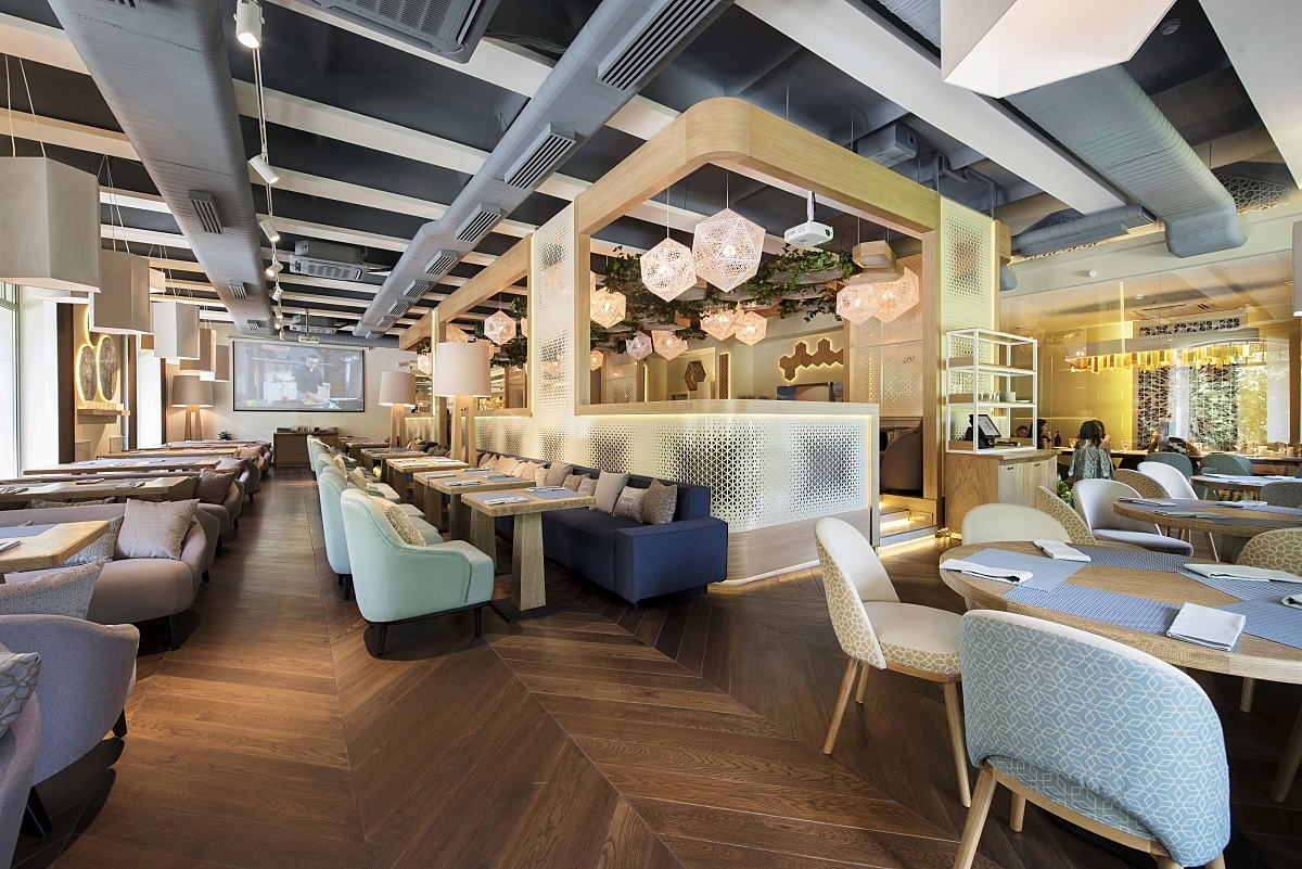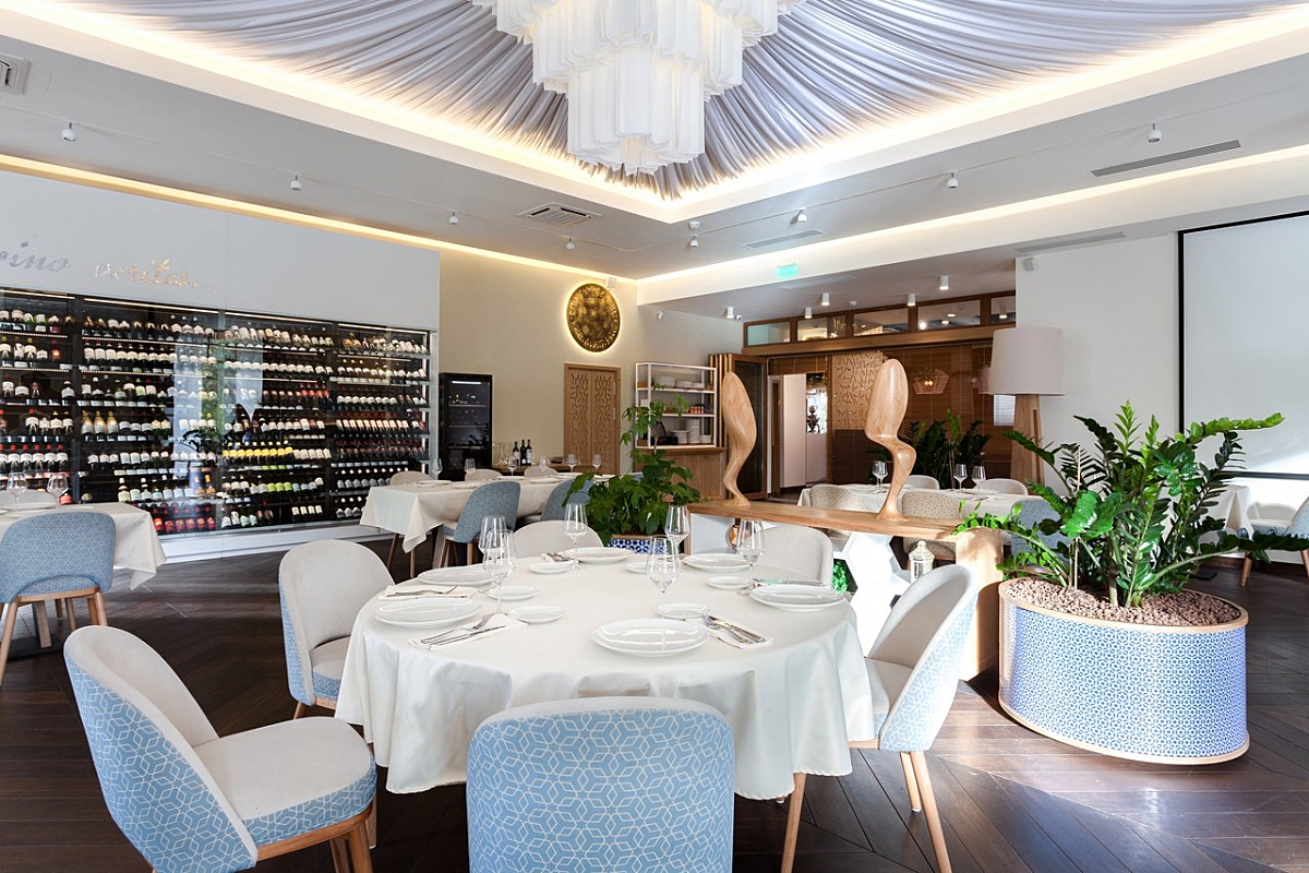 В меню – сбалансированное сочетание аутентичных блюд восточной и кавказской кухонь, а также их современное прочтение. Например, традиционный узбекский плов, «Цезарь» с люля-кебабом, телятина на гриле многое другое. Чтобы готовить все это многообразие, кухня заведения была оборудована профессиональным оборудованием: современными многофункциональными печами, традиционным гриль-мангалом и даже тандыром на дровах. Под все обилие яств вам порекомендуют отменные вина – танинные грузинские, итальянские, легкие испанские и вина Нового Света. Кстати, хранятся напитки в специально сконструированном для ресторана винном шкафу.