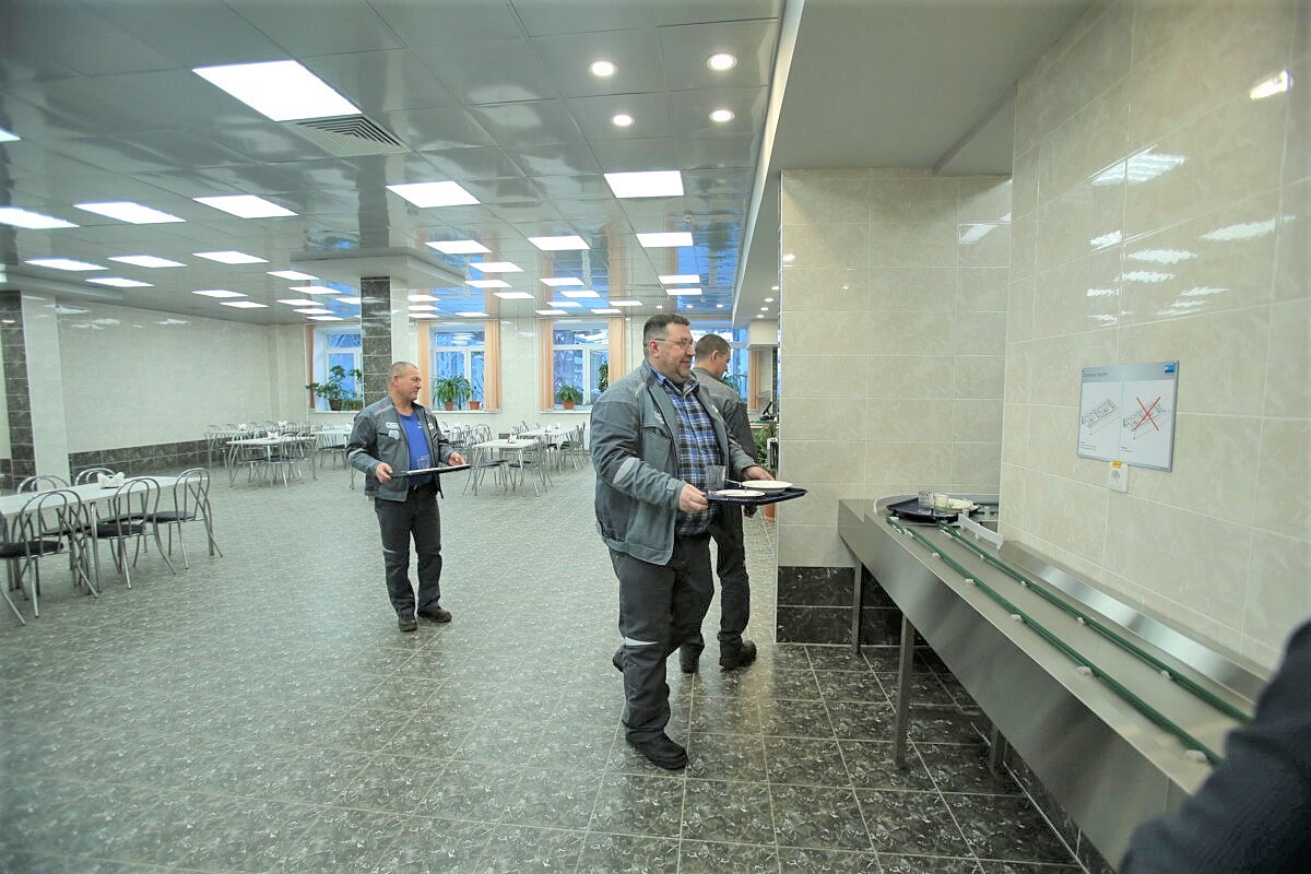 Готовность обновленного обеденного помещения проконтролировали первый вице-президент — операционный директор компании «Норникель» Сергей Дяченко и директор Заполярного филиала Николай Уткин.