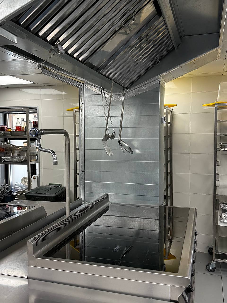 Дополнительно установлены профессиональная макароноварка, предназначенная для интенсивного приготовления пасты и других изделий, и гриль-саламандр, который позволяет быстро запекать, подрумянивать и доводить блюда до подачи, повышая производительность горячего цеха и оптимизируя работу на отдельных линиях.