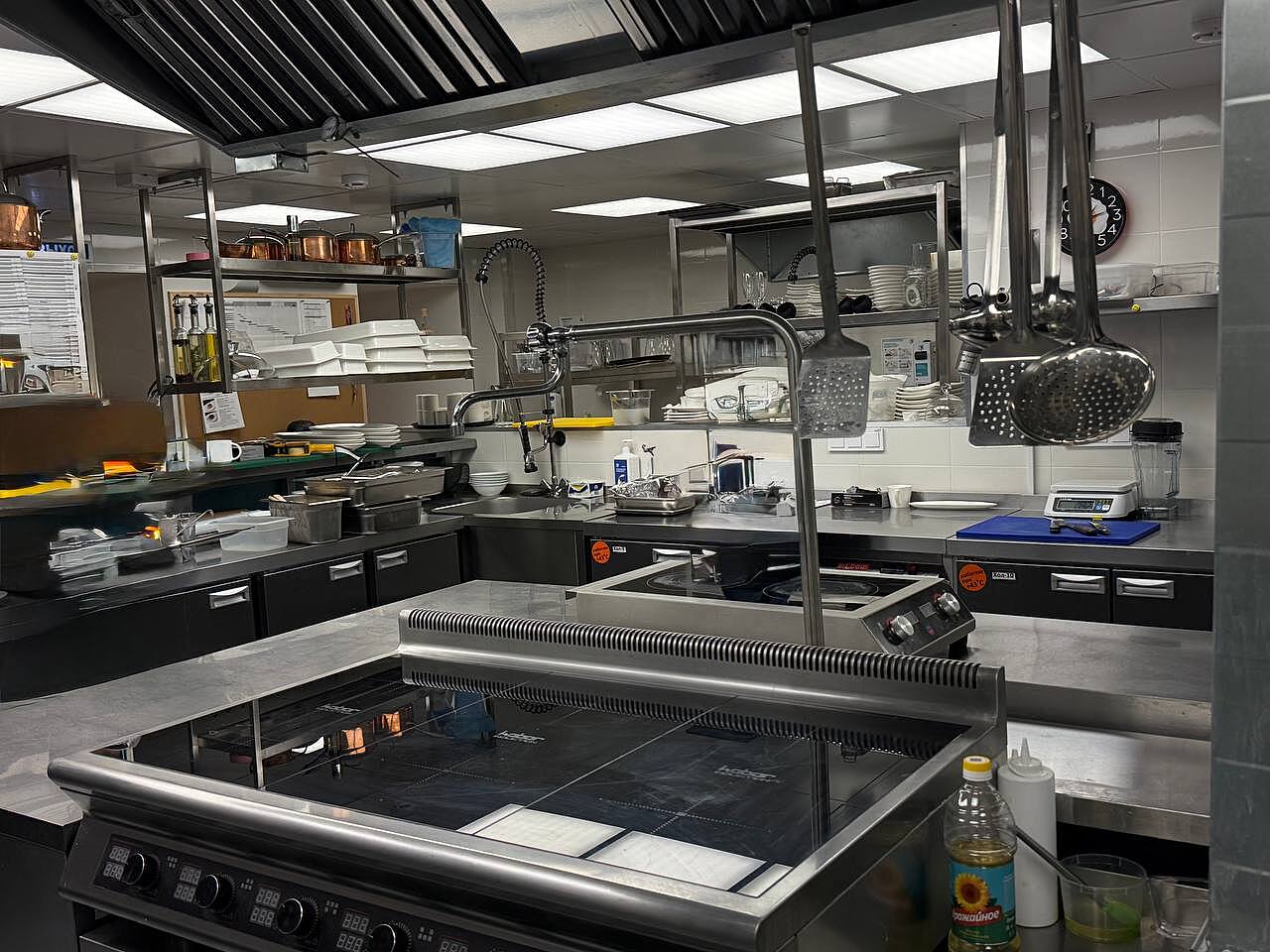 Ключевым элементом оснащения горячего цеха стала высокомощная шестикомфорочная индукционная плита. Каждая конфорка оснащена индивидуальным регулятором мощности, что обеспечивает точный контроль температуры и позволяет одновременно вести несколько технологических процессов с разными требованиями к нагреву. Мгновенный и равномерный нагрев сокращает время подготовки посуды и ускоряет переход между операциями.