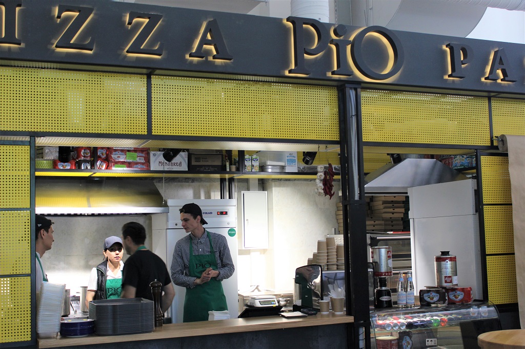 В целом на таком небольшом пространстве удалось разместить весь комплект необходимой кухонной техники с зонами хранения, приготовления и мойкой. Концепт пицца и паста особенно удачен для фуд-корта, а итальянская кухня с качественными продуктами всегда пользуются популярностью у отечественных гостей.