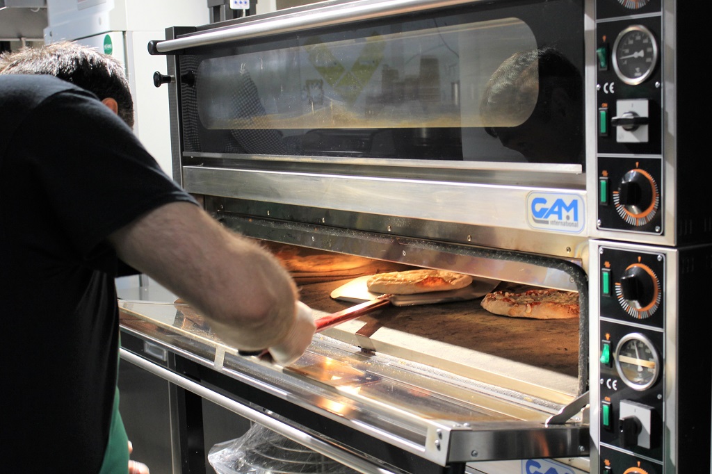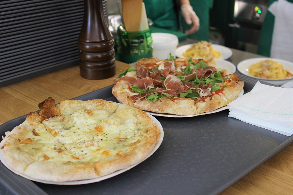Основные блюда – римская пицца и домашняя паста. Тесто для пиццы готовят по технологии длительного ведения: после замешивания его выдерживают в течение 14 часов, затем формуют и оставляют созревать еще на 6 часов. Раскатанные пицца-красты выпекают в подовой печи. На объекте установлена двухуровневая электропечь GAM. Затем их замораживают. При такой технологии Cook and Chill пицца получается легкой и хрустящей, а приготовить ее можно за считанные минуты при поступлении заказа на кухню. В меню есть классическая «Маргарита», «Четыре сыра», пицца с пармой и рукколой, оригинальный вариант с рикоттой и вешенками.