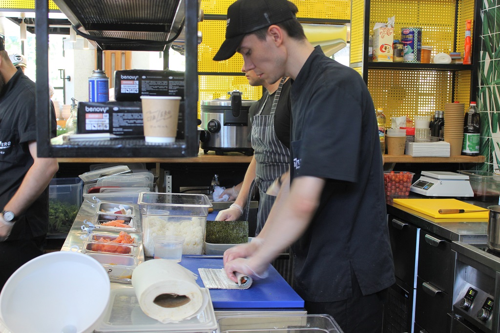 Особенно приятно и эстетически привлекательно, что команде удалось избежать использования одноразовой пластиковой посуды – блюда сервируют на фарфоровых тарелках.