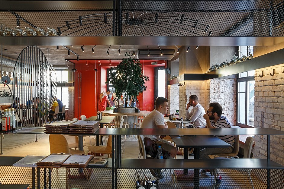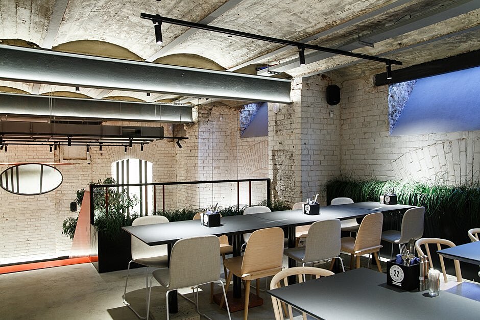 Дизайн-проектом московской пиццерии «22 см» занималось питерское бюро DA Architects. Пространство получилось светлым, спокойным, лаконичным.
