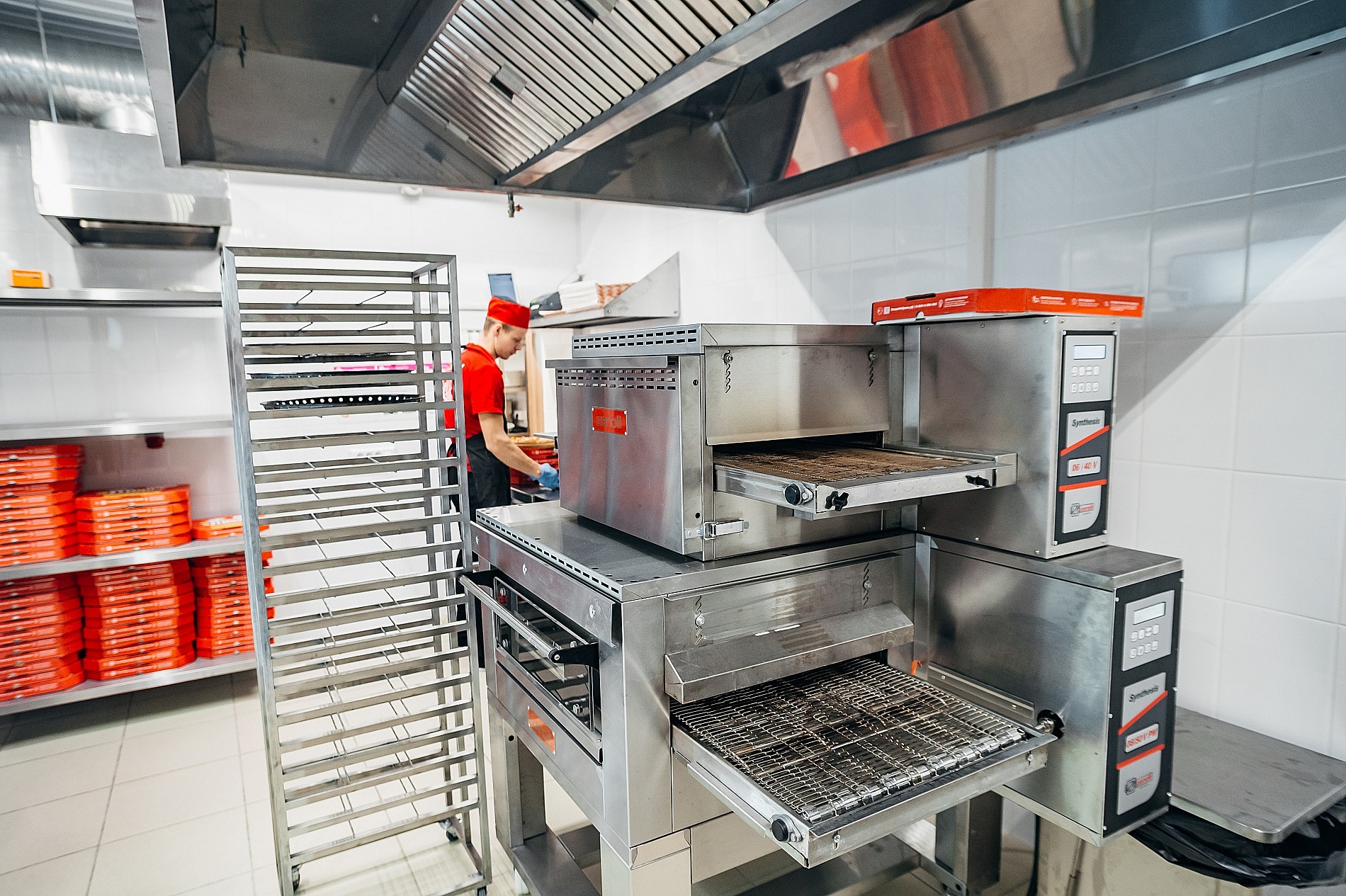 Разнообразие меню и большой поток заказов на каждом предприятии «ПиццаФабрика» требует использования только профессионального оборудования и максимальной автоматизации рабочих процессов, что позволяет компании сохранять высокое качество продукта и сервиса при любых нагрузках на кухню. Так на производственных площадках используются специальные прессы для теста, благодаря которым удается каждый раз получить идеальную толщину пиццы за несколько секунд. Выпекаются пиццы на конвейере итальянских пицца-печей ZANOLLI, которые гарантируют идеальное качество выпечки в любых условиях. Такая печь дает повару уверенность в безупречном конечном результате – он может не беспокоиться за качество пропекания, поскольку все процессы происходят автоматически. Главное – настроить в печи нужную скорость движения ленты, температуру и степень обдува продукта (это делает однажды, на первоначальном этапе проработки меню). Результат – всегда вкусная пицца, никаких подгоревших краев или непропеченной начинки-сердцевины! Это очень важно для поточного производства, чтобы поддерживать всегда единый, узнаваемый вкус блюд, за которым возвращаются клиенты.