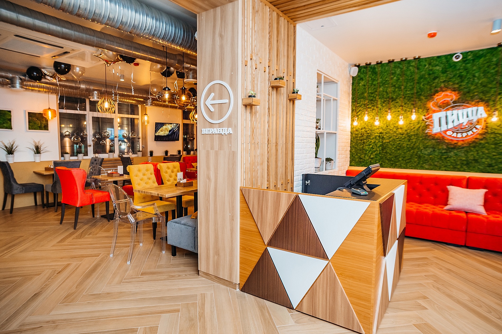 Что значит «семейный»? Семейное кафе или ресторан предполагает наличие больших комфортных детских комнат, детского меню, возможности проведения праздников и разных мероприятий для самых юных гостей. Плюс, дизайн интерьера выполнен в стиле мягкого контемпорари с элементами эко-декора. Адреса филиалов «ПиццаФабрика»: