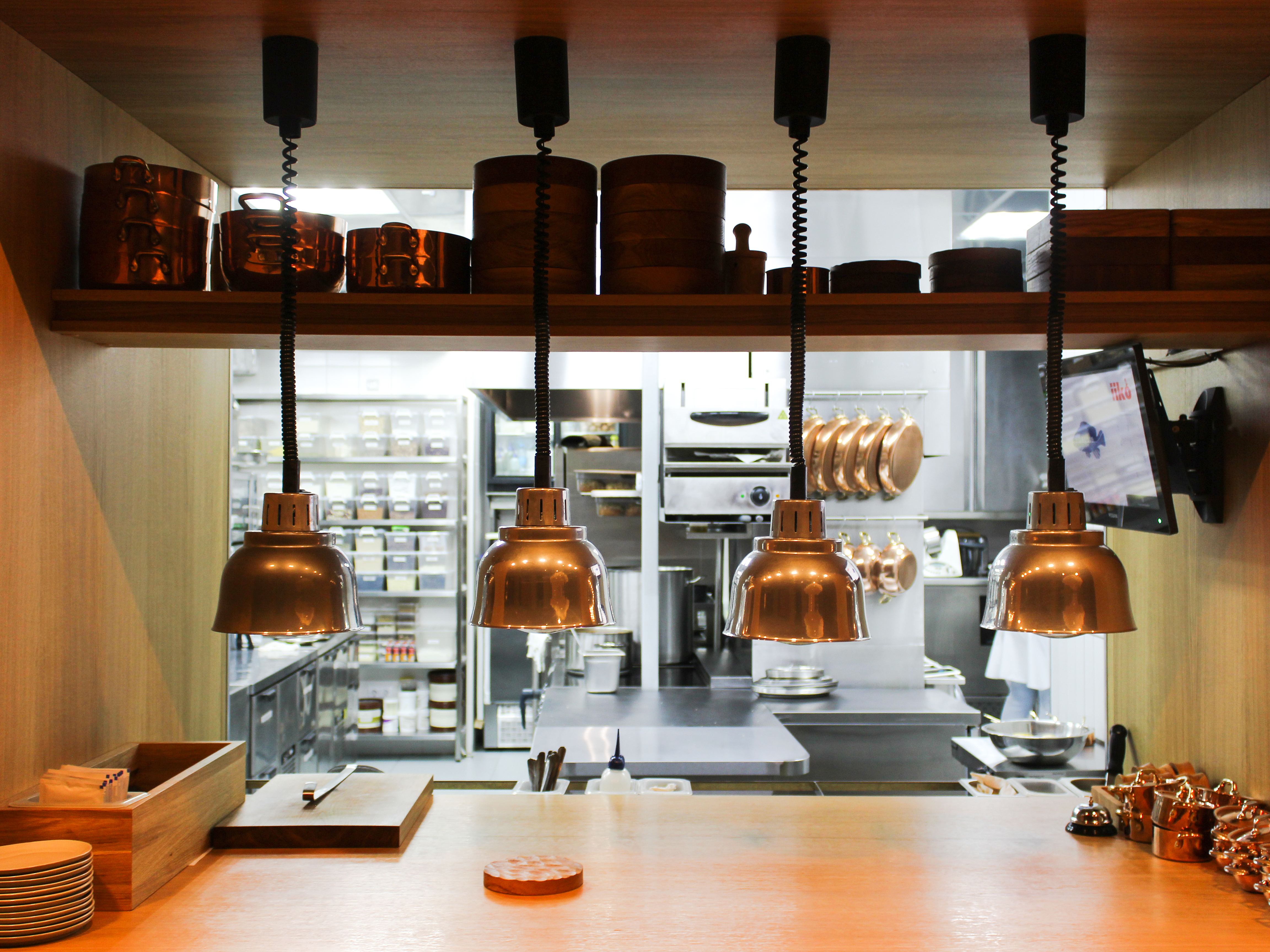 Меню — авторское, лаконичное и на 90% рыбное. Гениальное соте из мидий, которых готовят на углях, а подают в томатном или соусе из горгонзолы. В фиш-н-чипс вместо тарелки идет рыбья кожа, а декорацией к устрицам укладывают кисло-сладкую жемчужину из маракуйи. Из мясных блюд только кебаб из ягненка с бабагануш из перца и цыпленок с жженым картофелем.