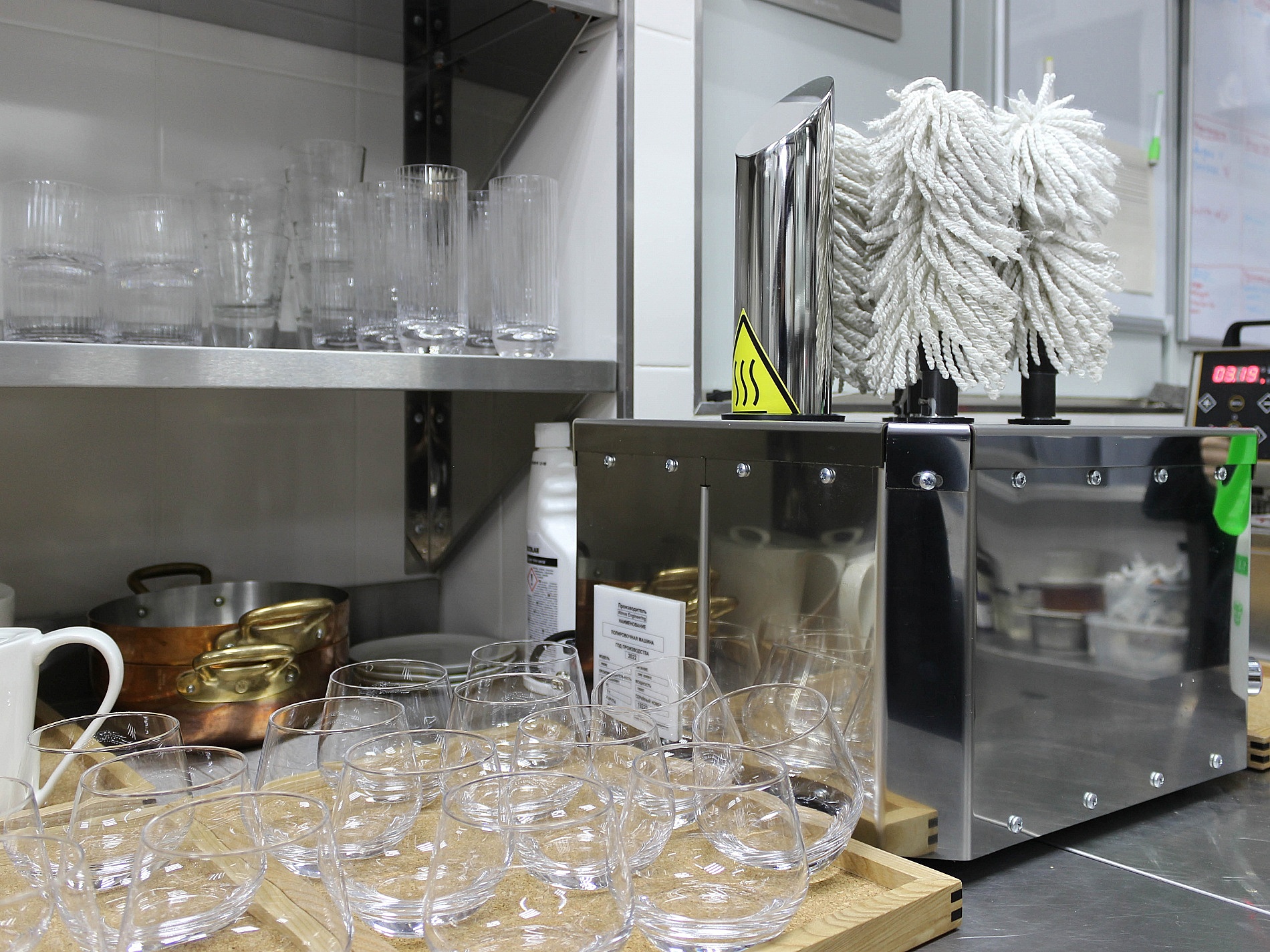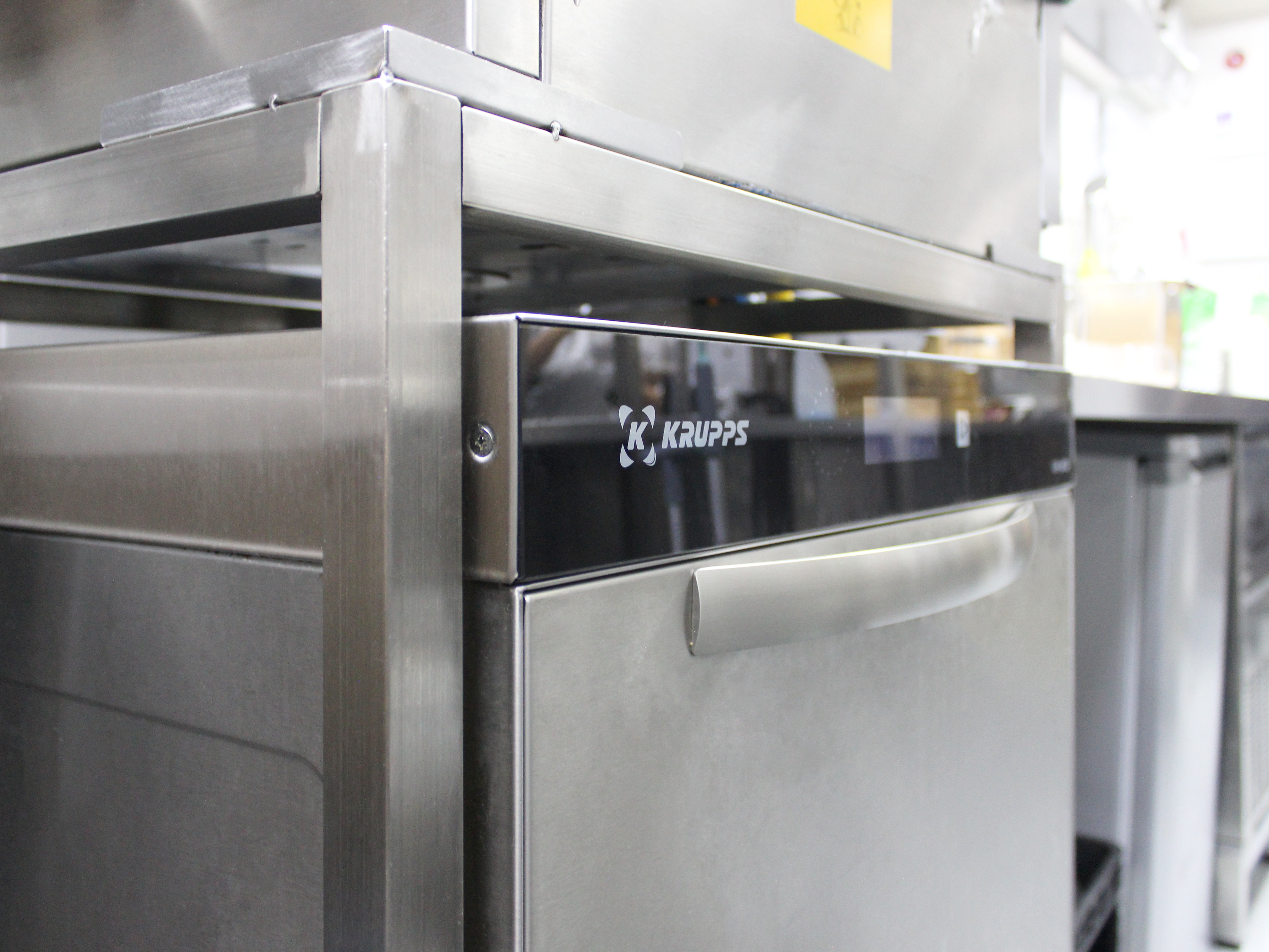 Мойка посуды осуществляется во фронтальной посудомоечной машине KRUPPS KORAL line K540E производительностью до 30 кассет в час.