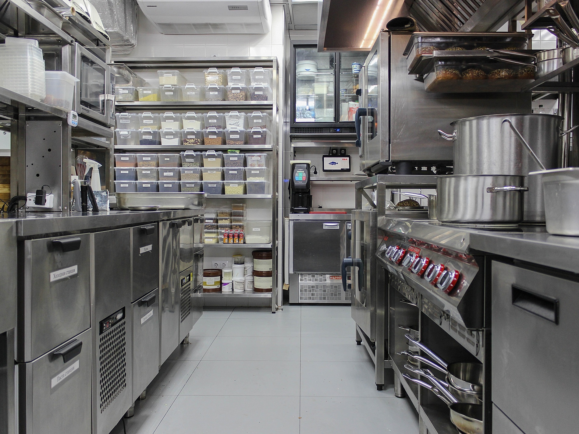 Все нейтральное оборудование по технологическому проекту: полки, стеллажи, производственные столы, подставки, моечные ванны также произвел российский завод BSV-INOX.