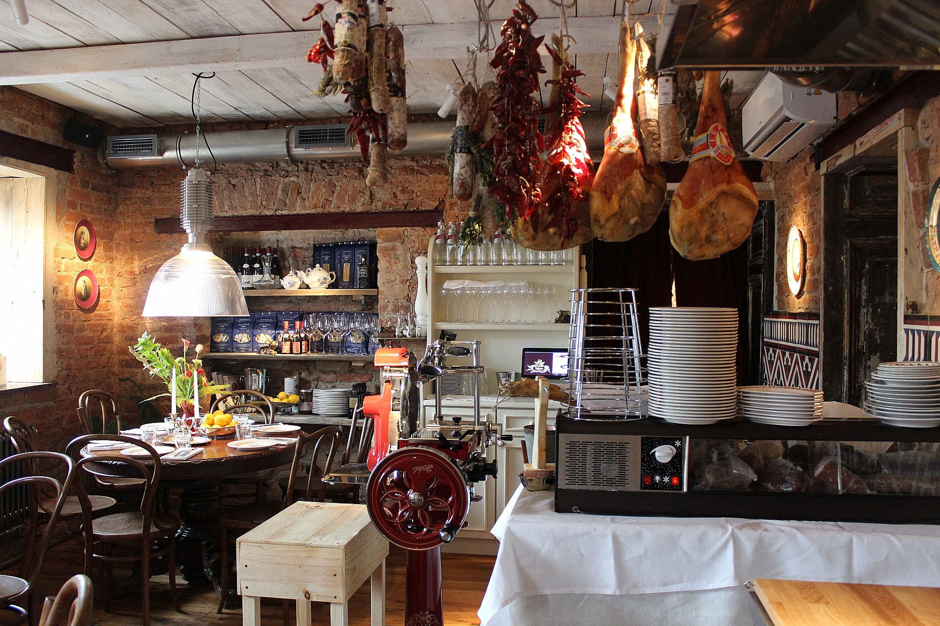 и великолепные специалитеты, которые идеально дополняют атмосферу уюта и дружбы. Главная изюминка ресторана - алый слайсер, который служит для нарезки кружевных кусочков салями и прошутто, привлекая внимание гостей и создавая неповторимую атмосферу.