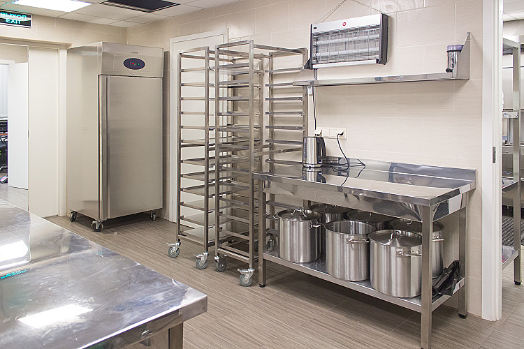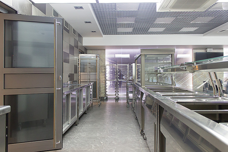 Особое внимание в данном проекте уделялось эффективной организации процесса производства и правильной последовательности выполнения операций на кухне. С помощью грамотного инженерно-технического проекта кухни стало возможным добиться единых стандартов приготовления и сократить время производства, что очень важно при условии больших объемов и высоких темпов работы. Качественное технологическое оборудование позволило автоматизировать многие процессы приготовления и снизить нагрузки на поваров.