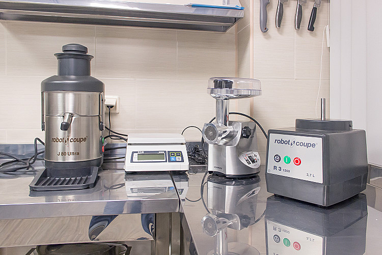 Оборудование: тепловое (RATIONAL, HACKMAN, ANGELO PO, SVEBA DAHLEN, TECNOINOX, BARTSCHER, ELECTROLUX); холодильное (RIVACOLD, TEFCOLD); электромеханическое (HALLDE, KITCHEN AID, SIGMA, ROBOT COUPE, LA MINERVA, BECKERS, KENWOOD), посудомоечное (DIHR), весовое (CAS), кофемашины (SAECO, JURA), линия раздачи (EMAINOX).