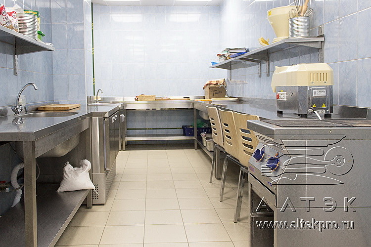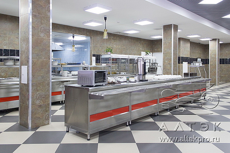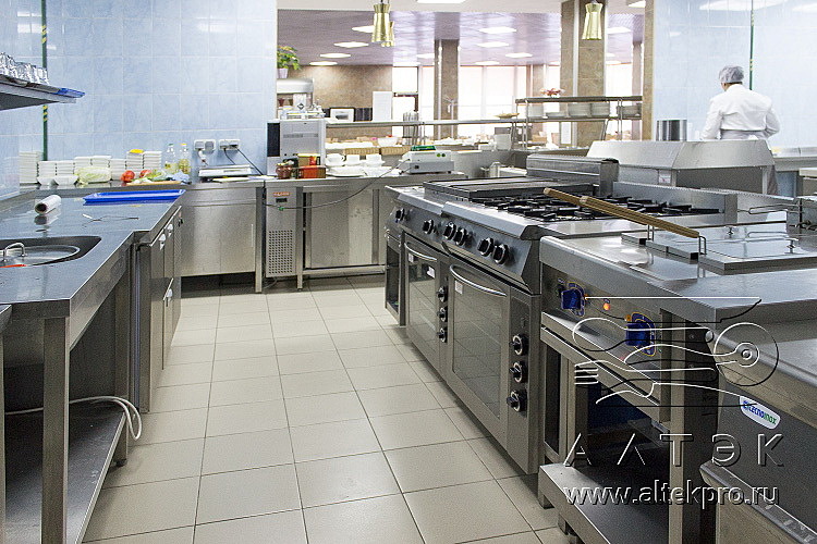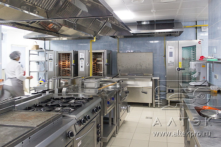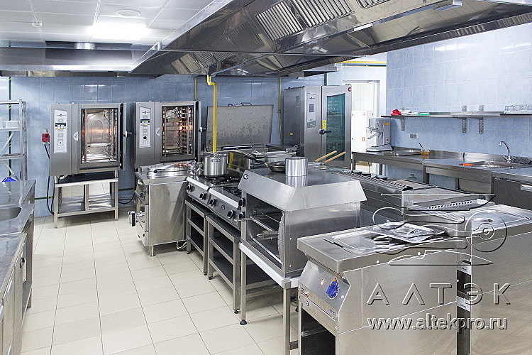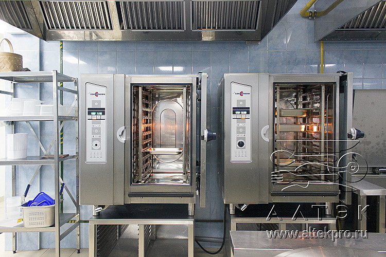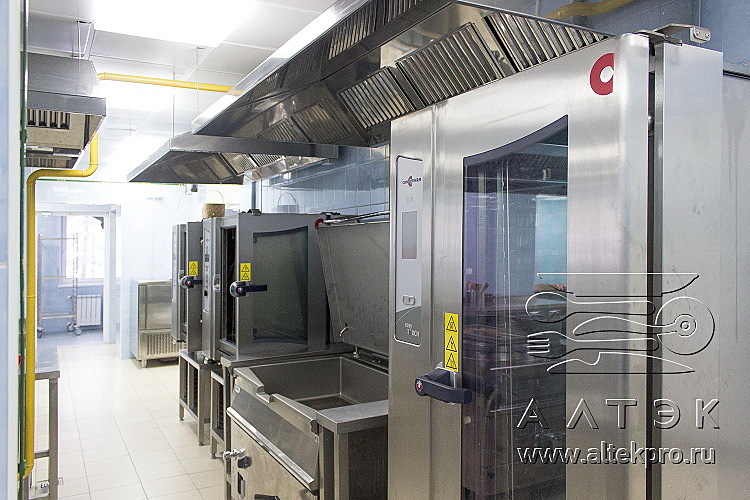 Специалисты «Алтэк» произвели поставку теплового оборудования в производственный цех столовой. При таких больших объемах производства огромное внимание уделялось мощности аппаратов. Были выбраны: пароконветомат CONVOTHERM OGB 20.10 EasyTouch+ConvoCLEAN, газовый пищеварочный котел и опрокидывающаяся сковорода TECNOINOX. Это профессиональное оборудование дает возможность обеспечивать питанием большое количество людей за короткое время, предлагать клиентам несколько вариантов комплексных обедов, а при составлении меню – учитывать содержание питательных веществ, микроэлементов, витаминов и количество калорий, что особенно важно для рациона питания спортсменов.