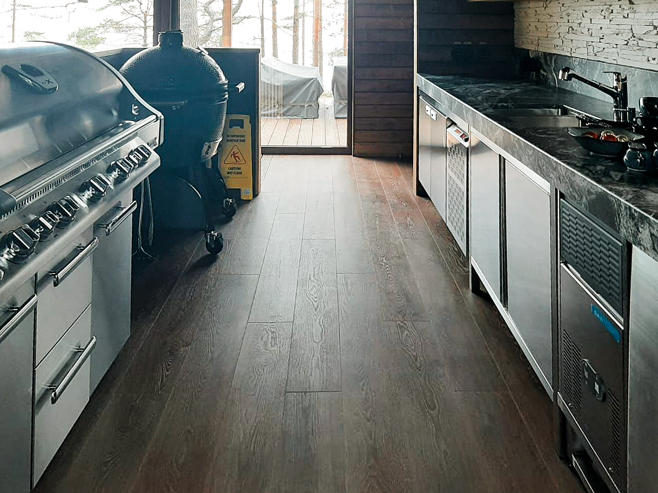 Хранить большие запасы продуктов (опять же ввиду удаленности отеля) помогают построенные холодильные и морозильные камеры POLAIR, а также шкаф глубокой заморозки COLDLINE, в котором по технологии Cook and Chill замораживают сезонные овощи, лесные ягоды и грибы. Видлица – излюбленное место грибников и ягодников. В шокере COLDLINE можно готовить мороженое, десерты, работать с шоколадом, пастеризовать молоко. Устройство подключается по Wi-Fi к смартфону, так что шеф-повар даже удаленно может контролировать его действия.