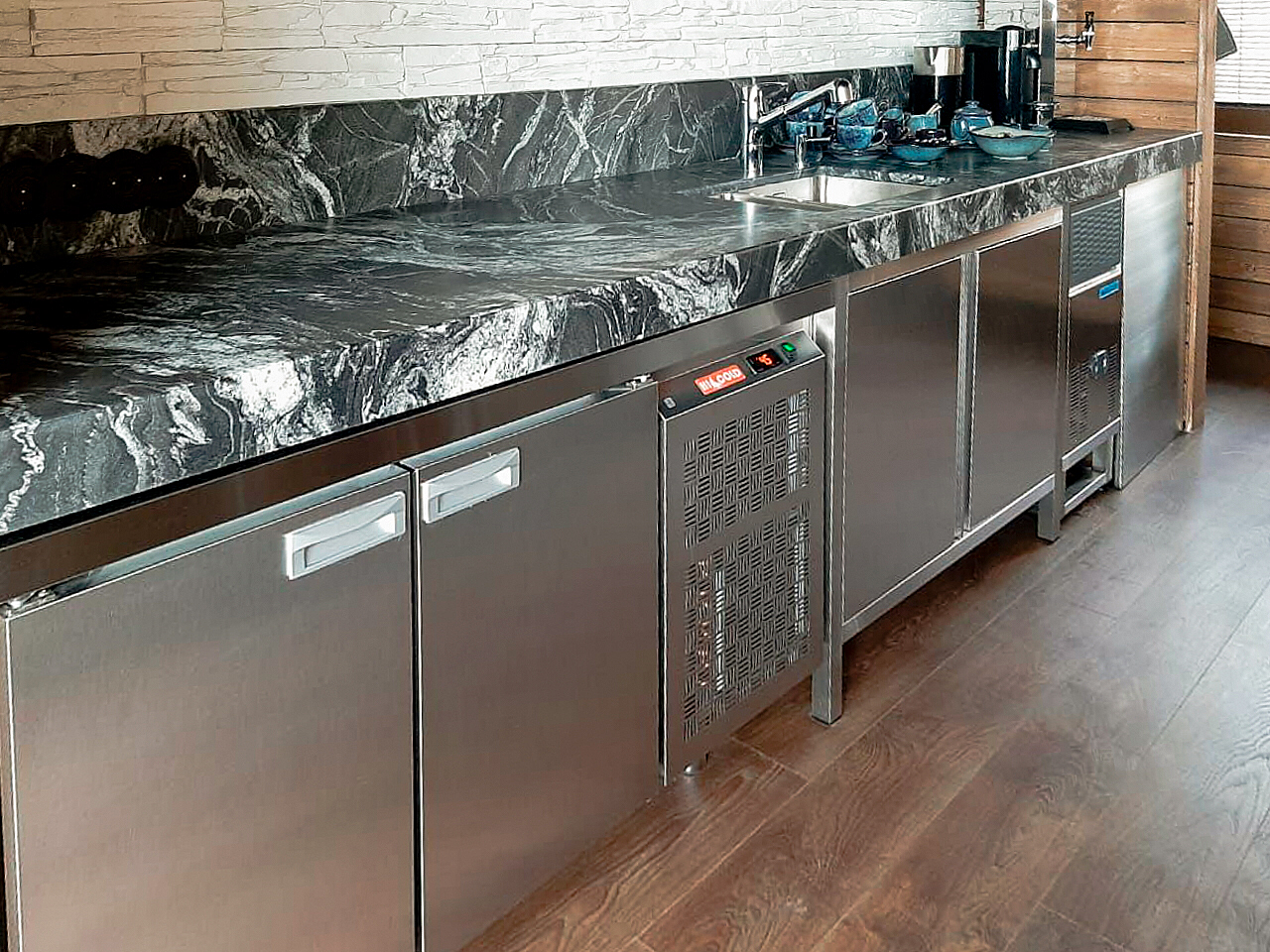 «Алтэк» занимался комплексным оснащением кафе и прачечной для отеля «Точка на карте. Видлица». Наши специалисты спроектировали производственные цеха, сделали планы расстановки техники, сформировали строителям техническое задание для вывода точек коммуникаций (вода, электричество, вентиляция), привезли и установили оборудование.
