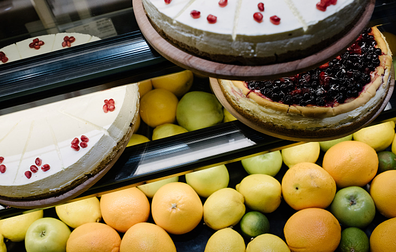 Гордость кофеен Tucano Coffee – чизкейки с разнообразными вкусами. Самые популярные – Oreo Cheesecake, Berry Cheesecake, Poppy Cheesecake. Их готовят на основе натурального творога и сыра Буко. За счет деликатных и тонко подобранных вкусов этот десерт идеально сочетается с любым кофе. Хранят нежно сыро-творожное блюдо в кондитерской витрине CRYOR Soul-1350 при температуре +2…+4 °C. Для данного проекта кофейни в Краснодаре была выбрана модель с профилями и отделкой из ЛДСП черного цвета. В данной модели фронтальная стеклянная панель и верхняя полка выполнены, как единый элемент, что обеспечивает большую обзорность и дает эффект отсутствия преграды между покупателем и товаром. Такое решение характерно для новых тенденций мерчендайзинга.