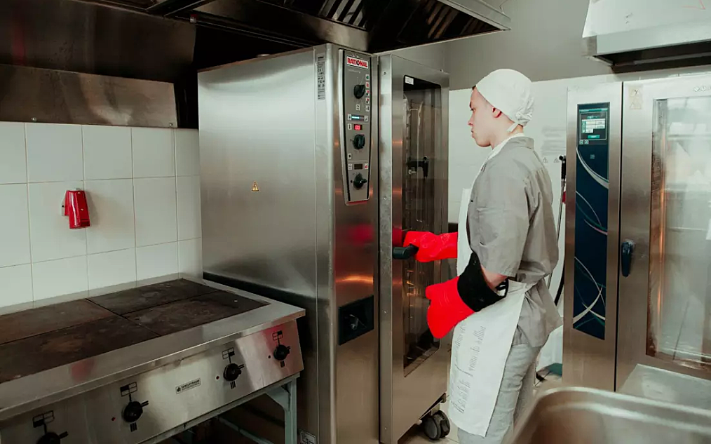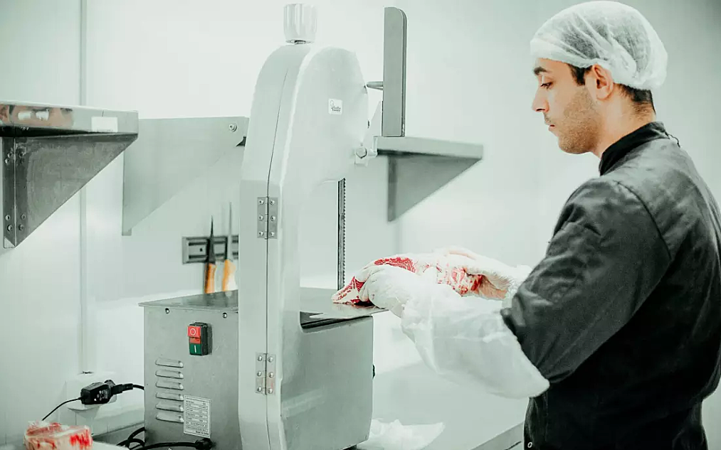 В мясном цехе заготавливают и вакуумируют мясные полуфабрикаты. Для ровной нарезки стейков используют специальные пилы. Мясо, овощи и крупы готовят по технологии sous vide (су-вид): запечатывают в пакеты, вакуумируют, выдерживают в пароконвектоматах при температуре 60-68 градусов. Это нужно, чтобы сохранить сочность и нежность, а также существенно снизить время доготовки ужина в домашних условиях. Кстати, в горячем цеху «Яндекс.Шефа» установлено 5 пароконвектоматов RATIONAL.