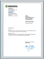 В конструкторском бюро и отделе научно-технического развития EMAINOX работают квалифицированные, мотивированные на успех специалисты, которые имеют в своем распоряжении все необходимые технические средства и высокие стандарты качества. По этой причине продукция компании EMAINOX отмечена сертификатом качества ISO 9001.